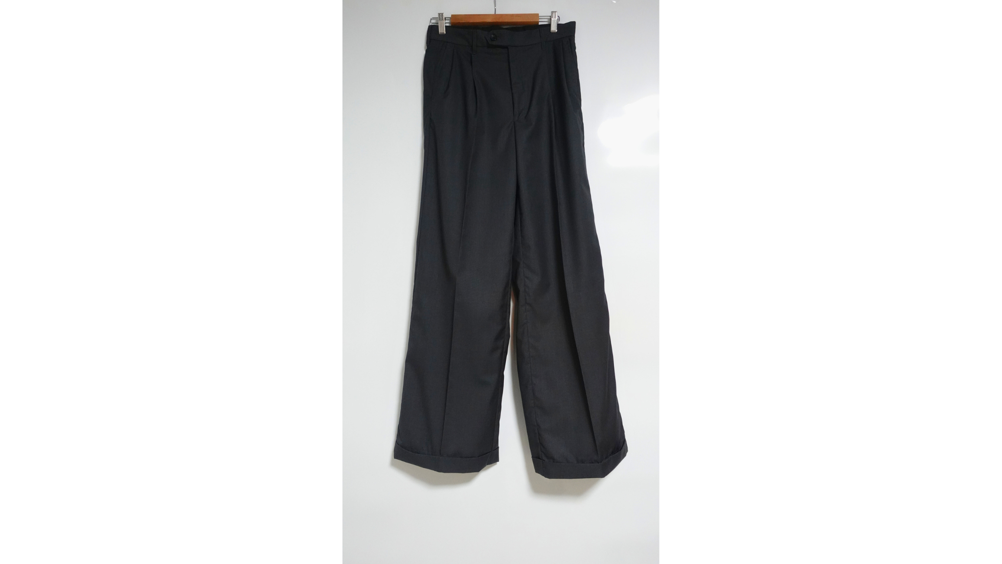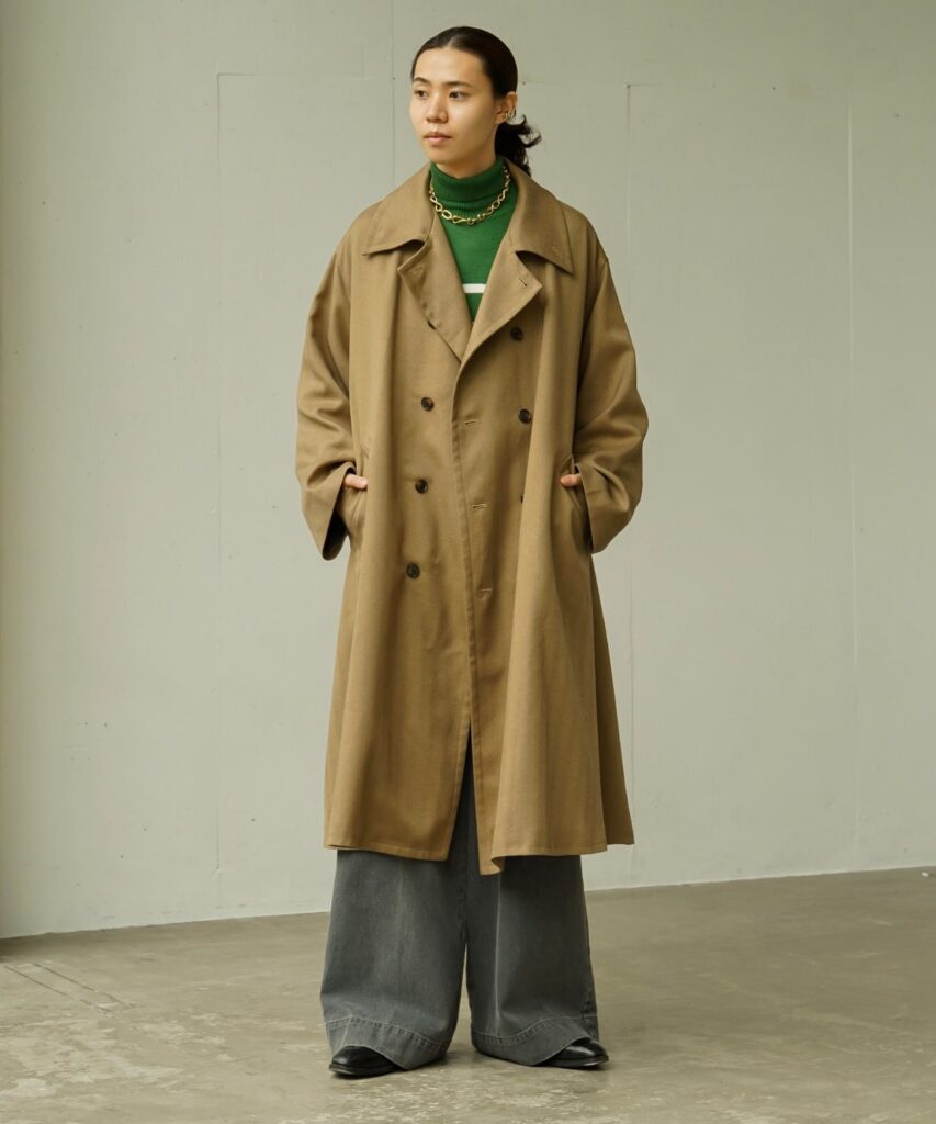 ダブルの裾や2タックといったドレス要素を、ゆるっと大きいシルエットで崩しています。