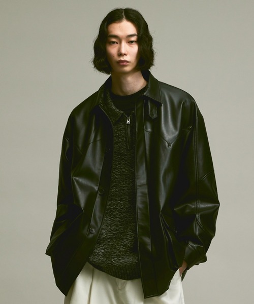 soerte stand collar leather jacket<参照元> https://zozo.jp/shop/soerte/goods/59463070/