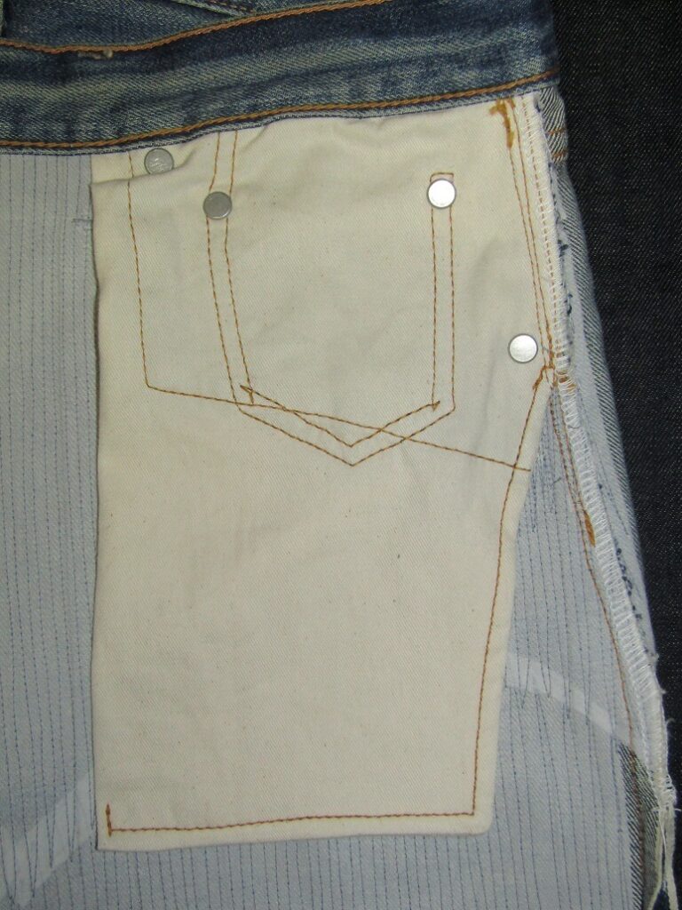 思い出してください。通常のデニムの裏地は、白いコットンだと思います↓